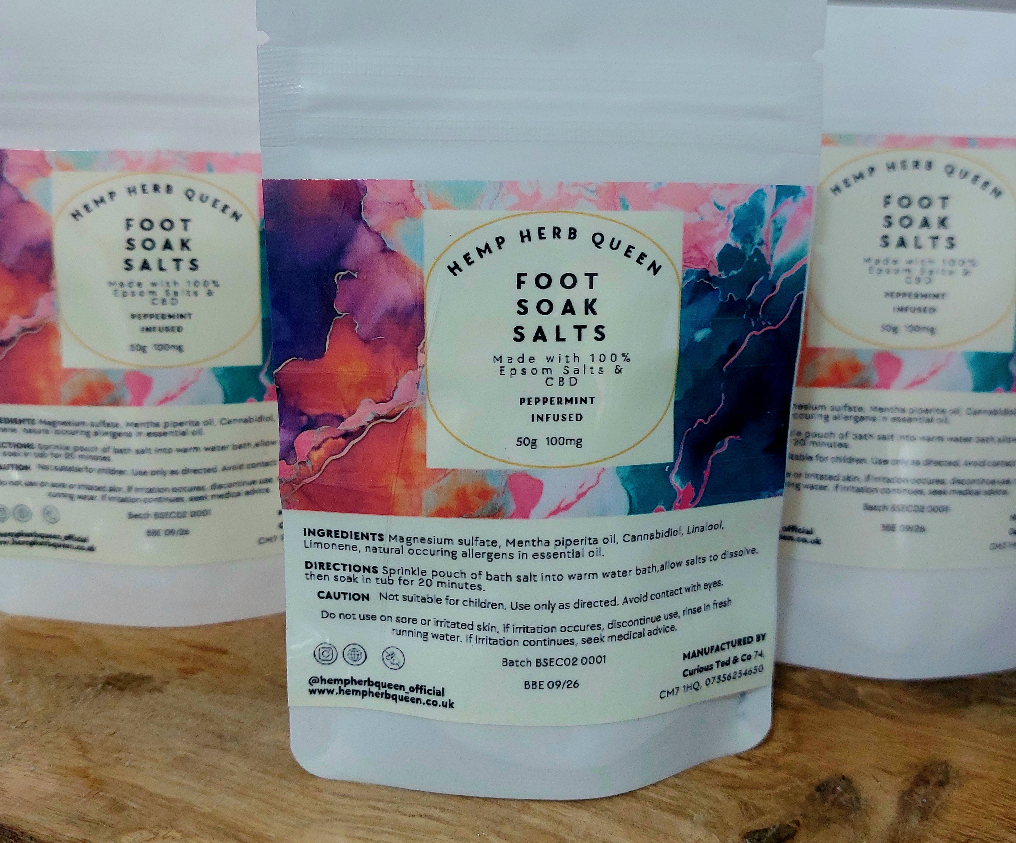 Foot soak is available in a 25g pouch with 50mg of CBD.