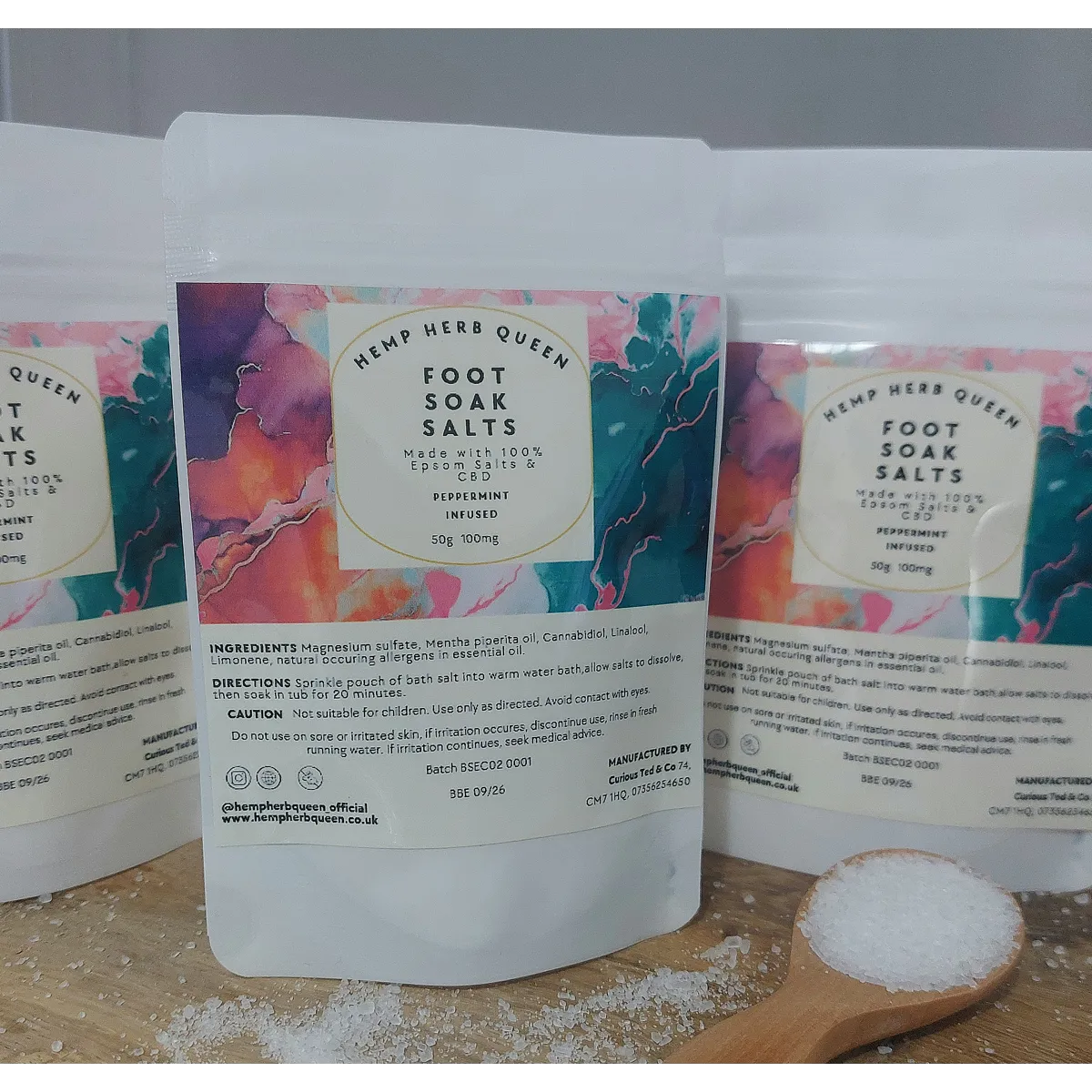 Indulge your senses and pamper your feet with Hemp Herb Queen CBD Infused Peppermint Epsom Foot Soak.