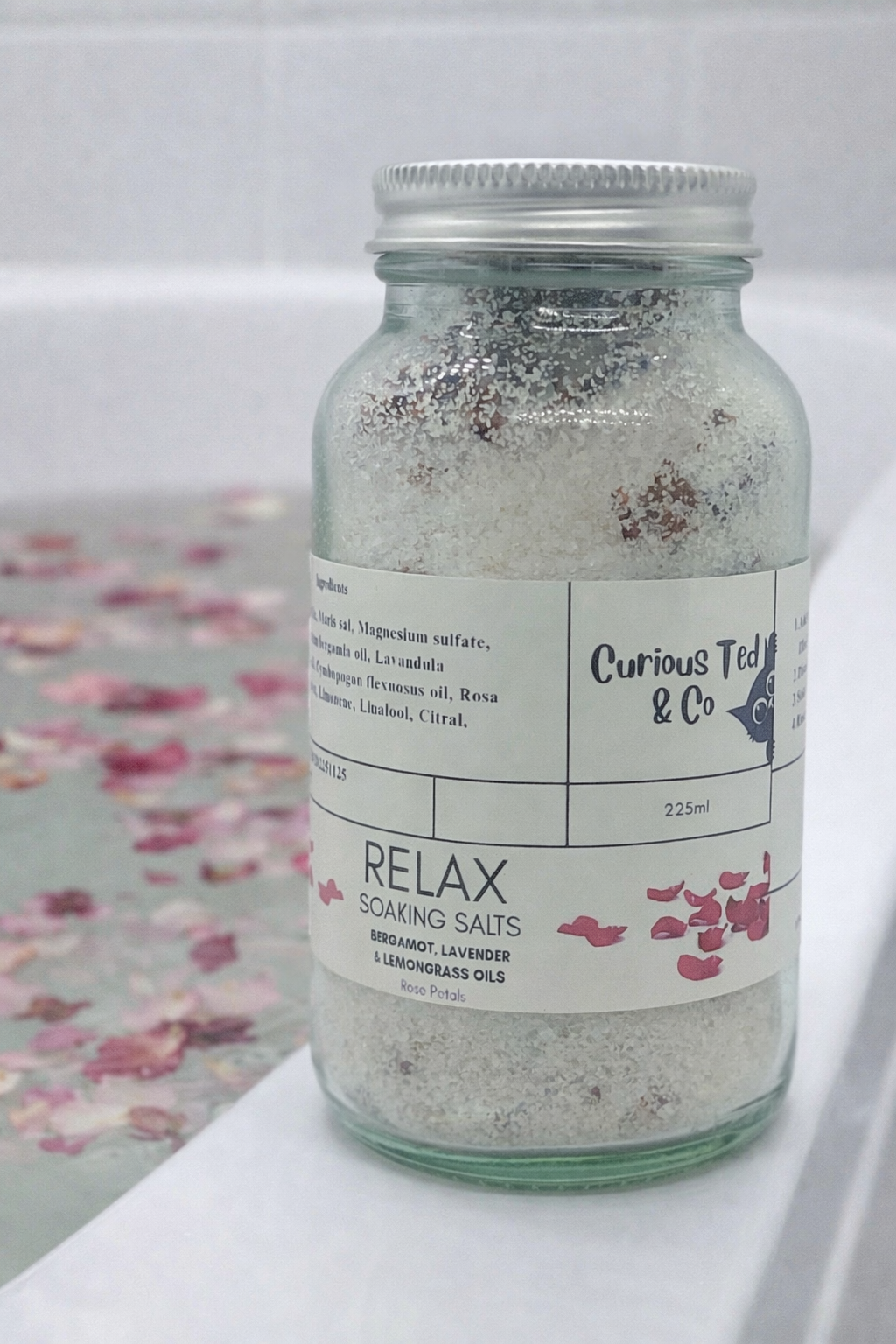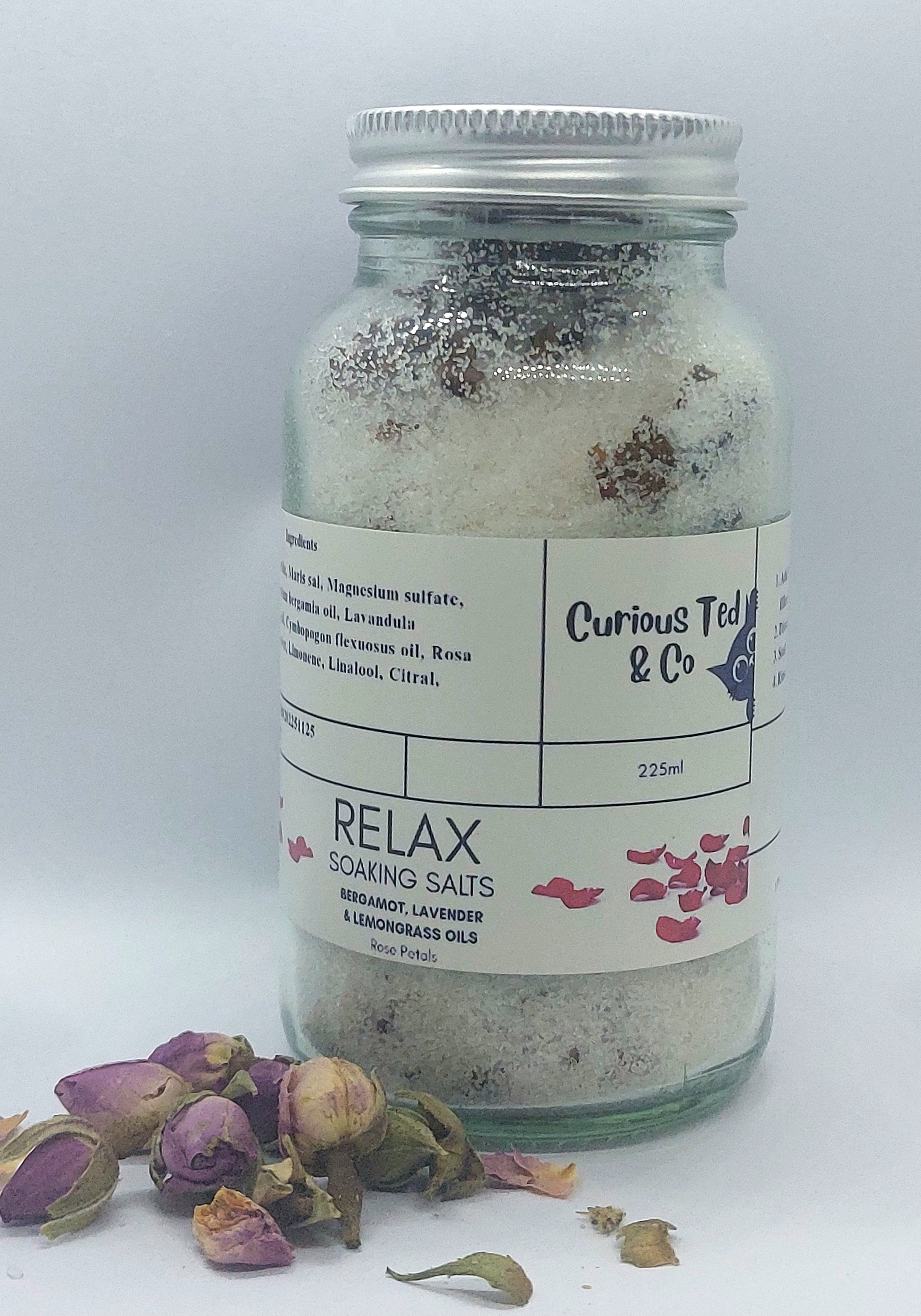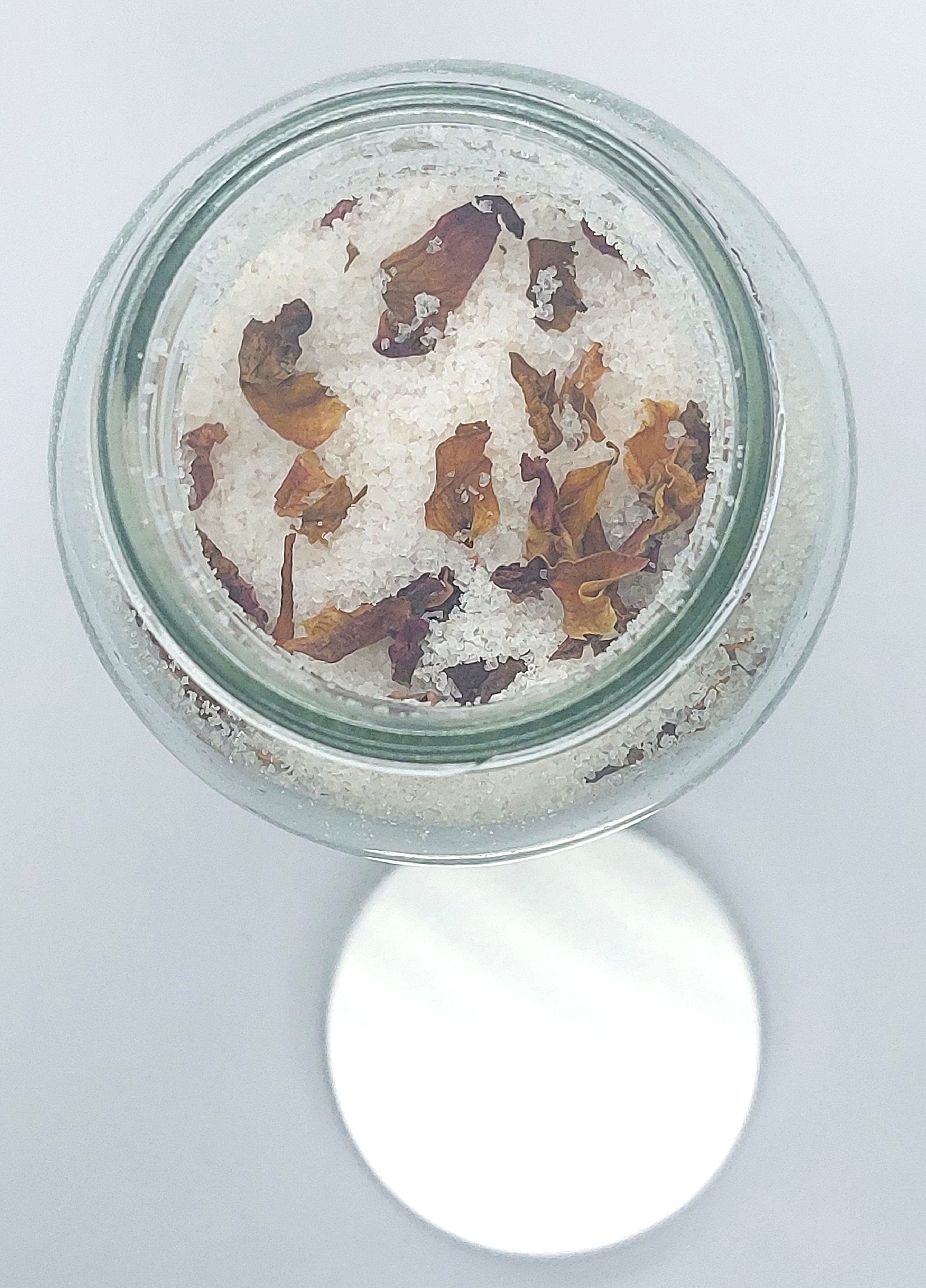 Indulge in a blissful escape with our Luxury Bath Salts with Rose Petals, Bergamot, Lavender & Lemongrass essential oils.