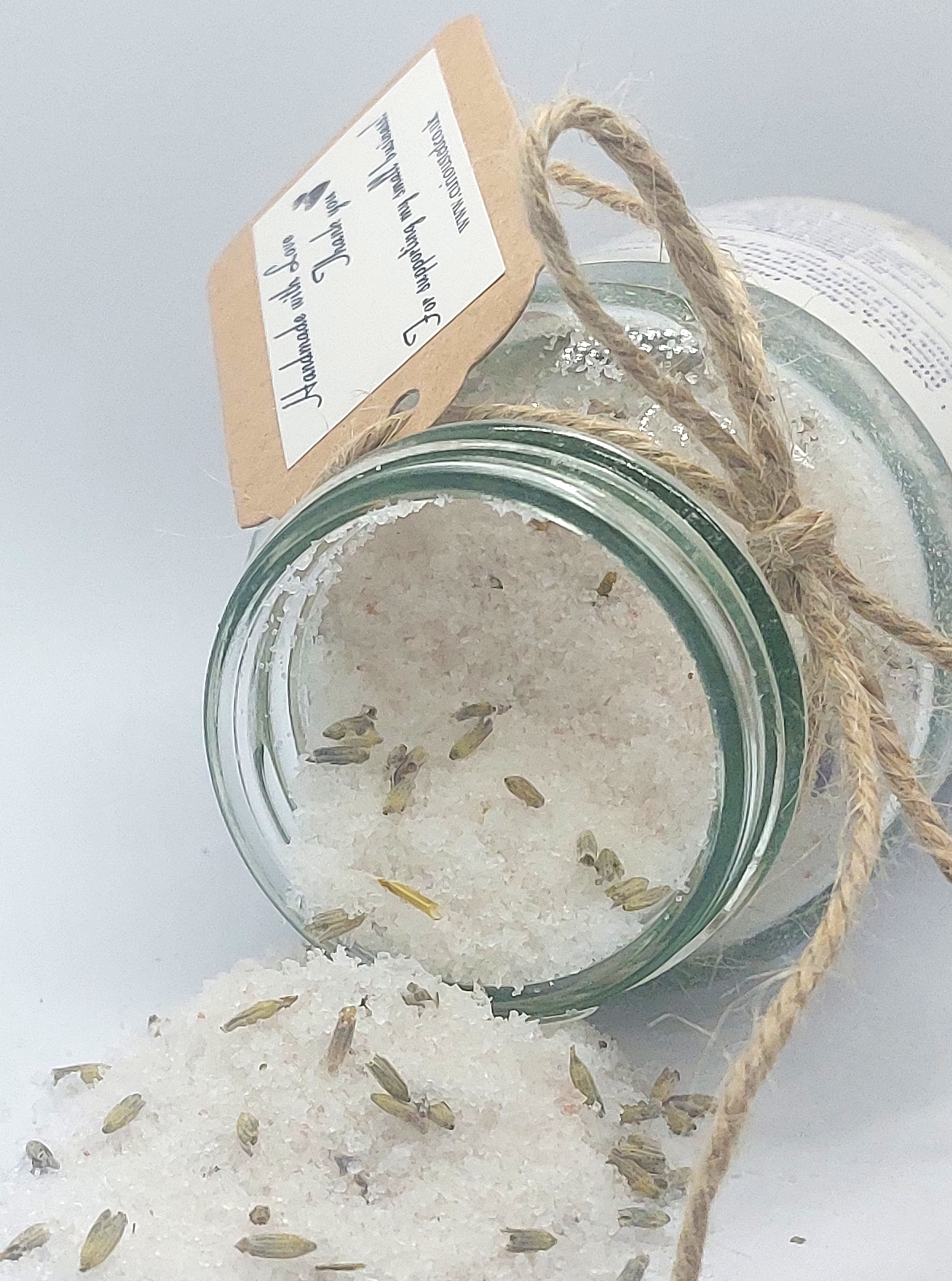 Indulge in a blissful escape with our Luxury Bath Salts with lavender flowers & essential oils.