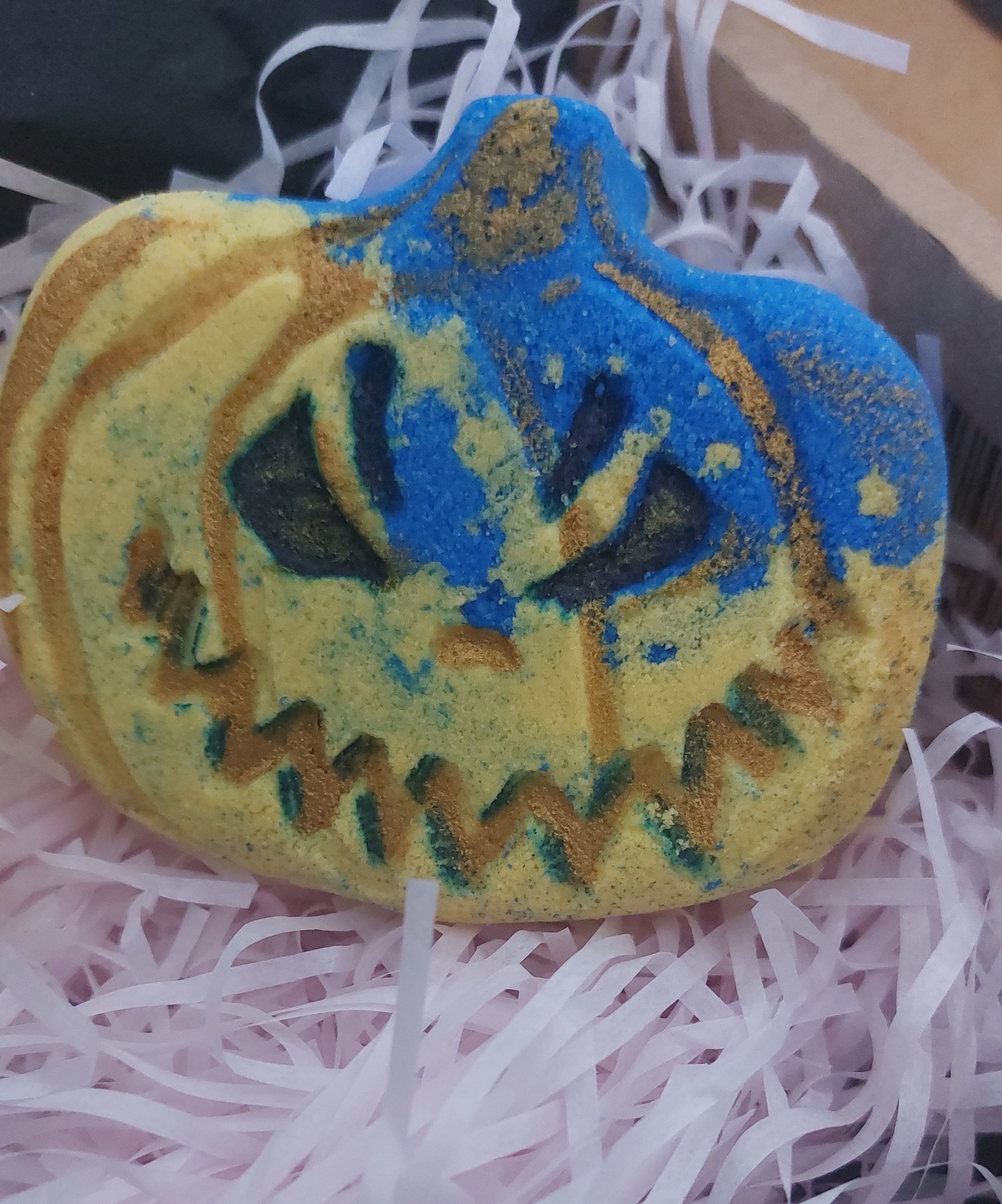 Indulge in a wickedly delightful bath experience with our Luxury Evil Pumpkin Shaped Bath Bomb!